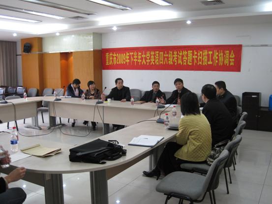 为切实做好全国大学英语四六级考试答题卡扫描工作,确保2009年下半年大学英语四六级考试答题卡扫描的组织实施工作,11月27日,重庆市招考办在公司厚德楼3020会议室召开了2009年下半年大学英语四六级考试答题卡扫描工作协调会;重庆市招考办唐大庆副主任、财务处魏兰处长、考务考籍处杨跃东处长,公司陈运超副董事长、365英国上市公司和计信公司党政领导及相关工作人员参加了会议;会议由市招考办考务考籍处杨跃东处长主持。