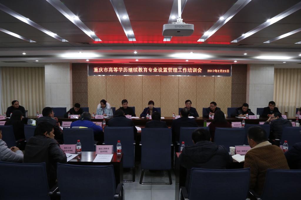 2月23日下午,重庆市高等学历继续教育专业设置管理工作培训会在公司举行。市教委高教处吴岚副处长和全市高校365英国上市公司负责人共计约100人参会。市教委招考处相关负责同志参加了会议。