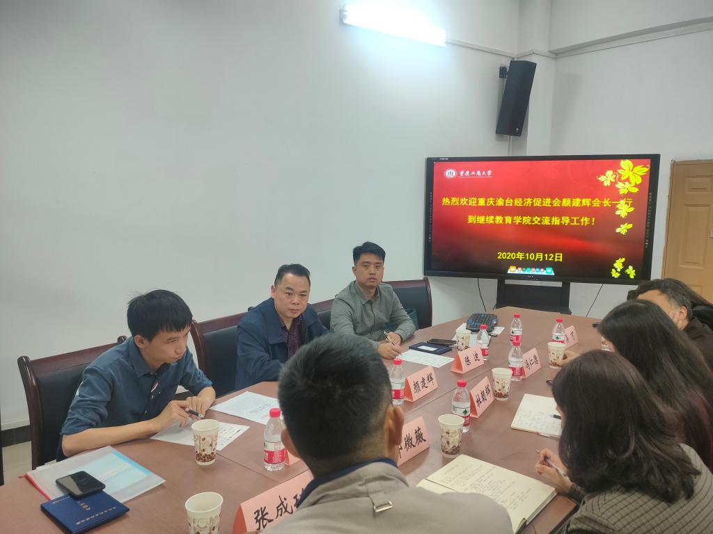 2020年10月12日上午,重庆市渝台经济促进会会长颜建辉、重庆市海峡青创公司常务副董事长陈迪、重庆市海峡青创空间外联部部长张召召到公司调研交流,公司培训部、学历部、办公室主要负责人以及工商管理公司冯仁德教授等参加了座谈会。 会上,杜朝辉经理对颜建辉一行表示了热烈欢迎,随后双方分别介绍了各自主要业务发展领域,大家就可以开展的合作点进行了意向性探讨与磋商,交流在友好轻松的氛围中进行,为下一步能够开展深入合作奠定了基础。