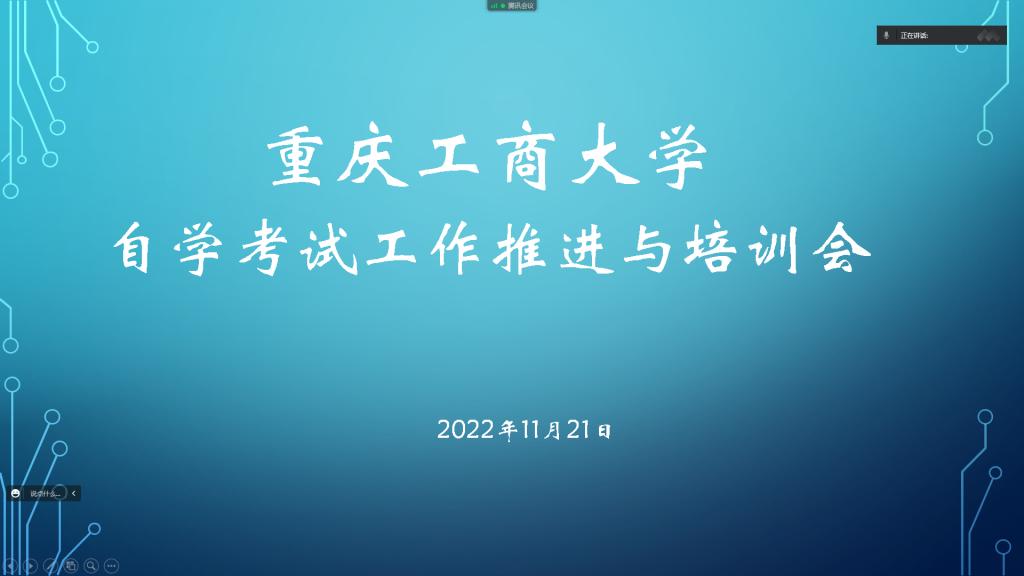 11月21日上午,公司举行了自学考试工作推进与培训会,经理杜朝辉、学历部副部长罗志强、学历部自考工作人员及12个助学单位负责人参加了本次线上会议,会议由袁晓灵老师主持。