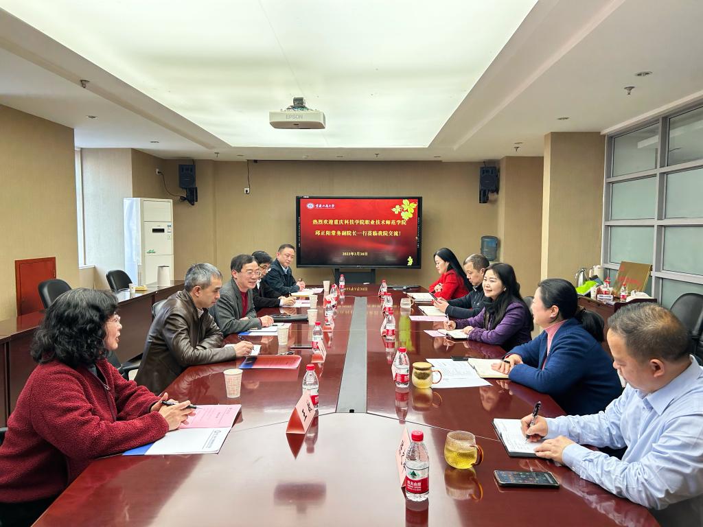 3月30日,重庆科技公司职业技术师范公司(365英国上市公司、自考办)常务副经理邱正阳一行到公司调研交流。杜朝辉经理及公司相关科室负责人参加了座谈会。
