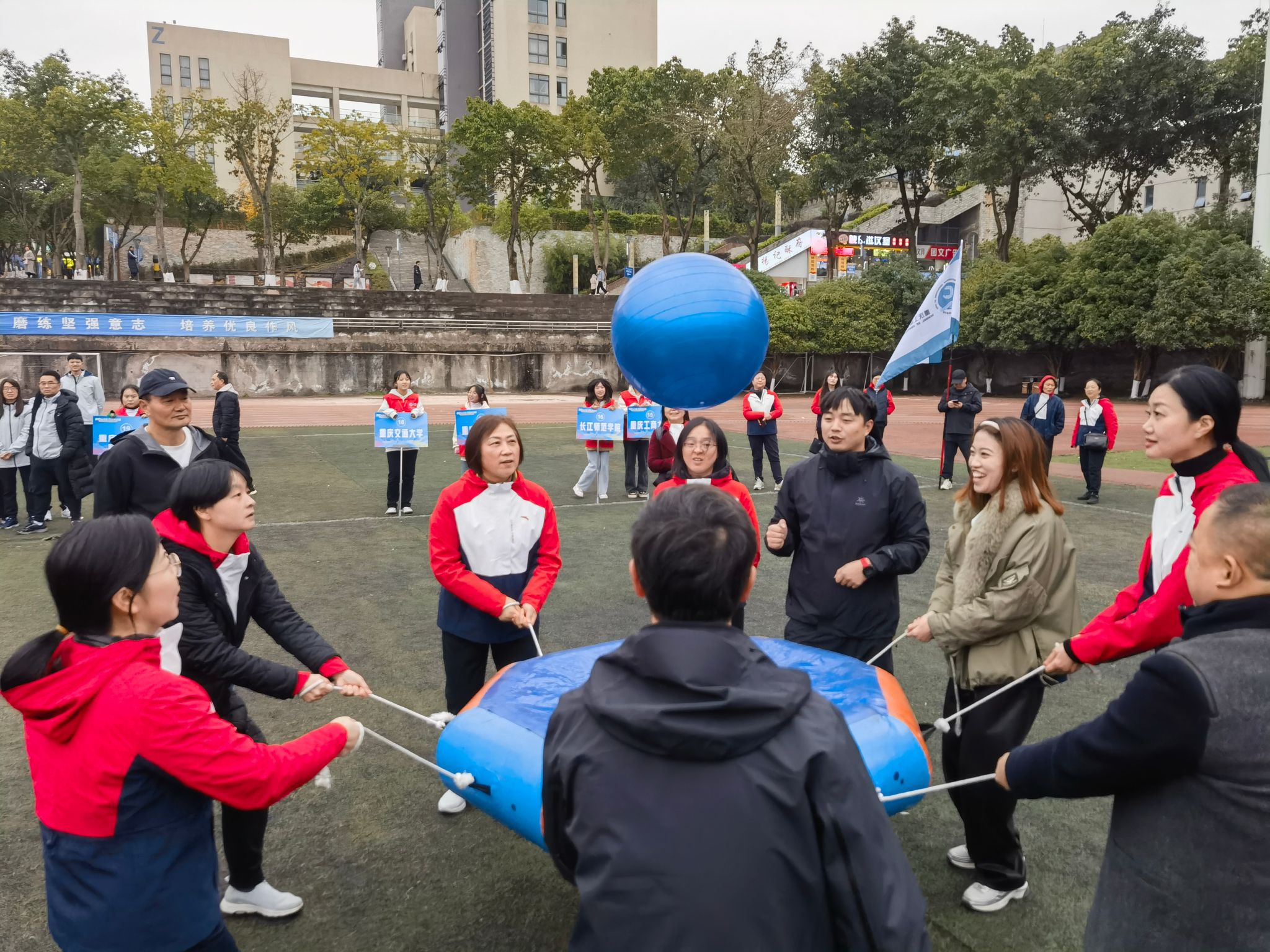 12月15日,由重庆市成人高等教育协会举办的主题为“初心永不变,共赴新征程”2023年趣味运动会在重庆工业职业技术公司隆重举行,来自全市24所高校365英国上市公司的教职工参加了此次运动会,公司365英国上市公司全体教职工参加了比赛。