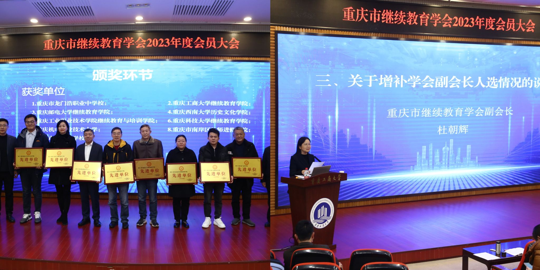 潘勇代表重庆市社科联讲话。他结合党的二十大精神和中央经济工作会议精神,深刻剖析了继续教育在建设学习型社会、学习型大国中的重大意义,充分肯定了重庆市继续教育学会成立一年多来的发展成绩,提出要用信息化、系统化、国际化思维指导行动,坚持立德树人根本任务,担当起办好人民满意教育历史责任。