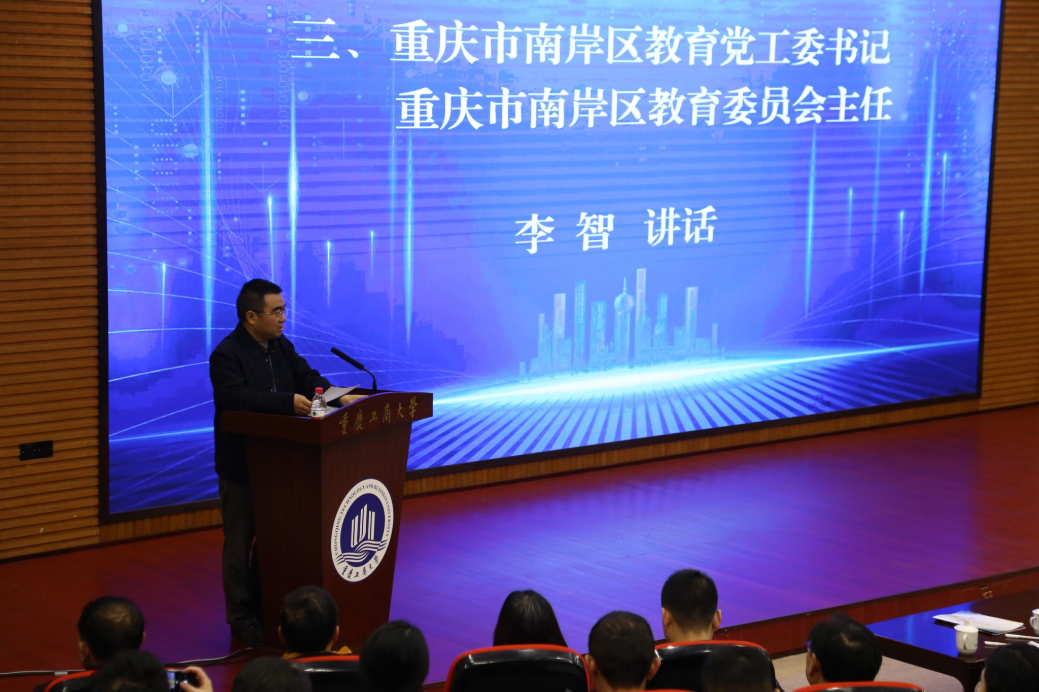 李智代表重庆市南岸区教育工委讲话。他介绍了南岸区“书香南岸,幸福教育”发展理念以及优质均衡教育发展举措与成就,强调了继续教育与地方发展的融合性、协同性和创新性。
