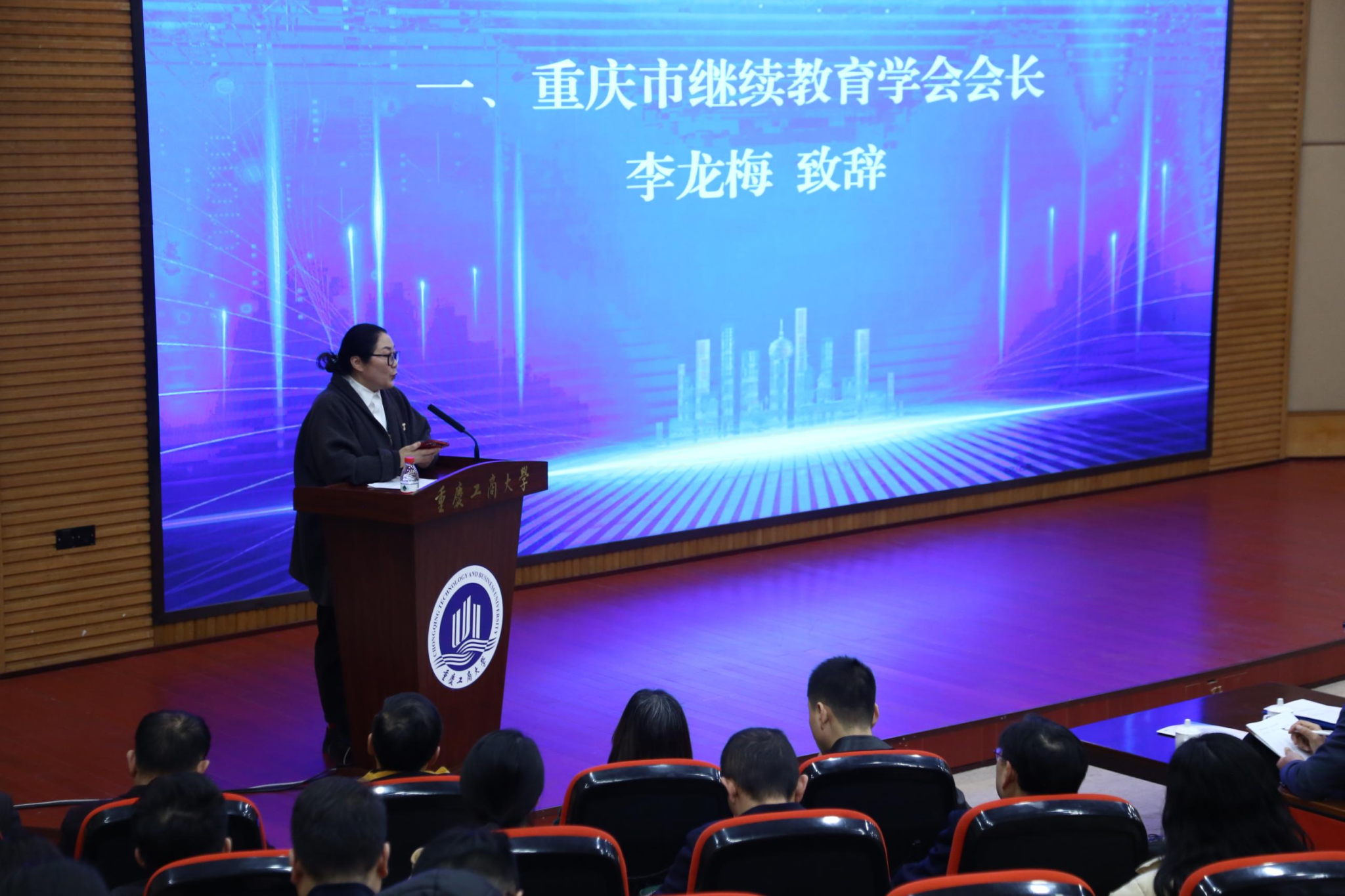 李龙梅代表重庆市继续教育学会致词。她表示继续教育是适应时代发展的需求,满足人民群众学习提升的重要途径,是推动方经济社会发展的重要力量,希望通过本次会议各会员单位积极整合资源,加强多方合作、形成合力,共同推动继续教育事业的发展。