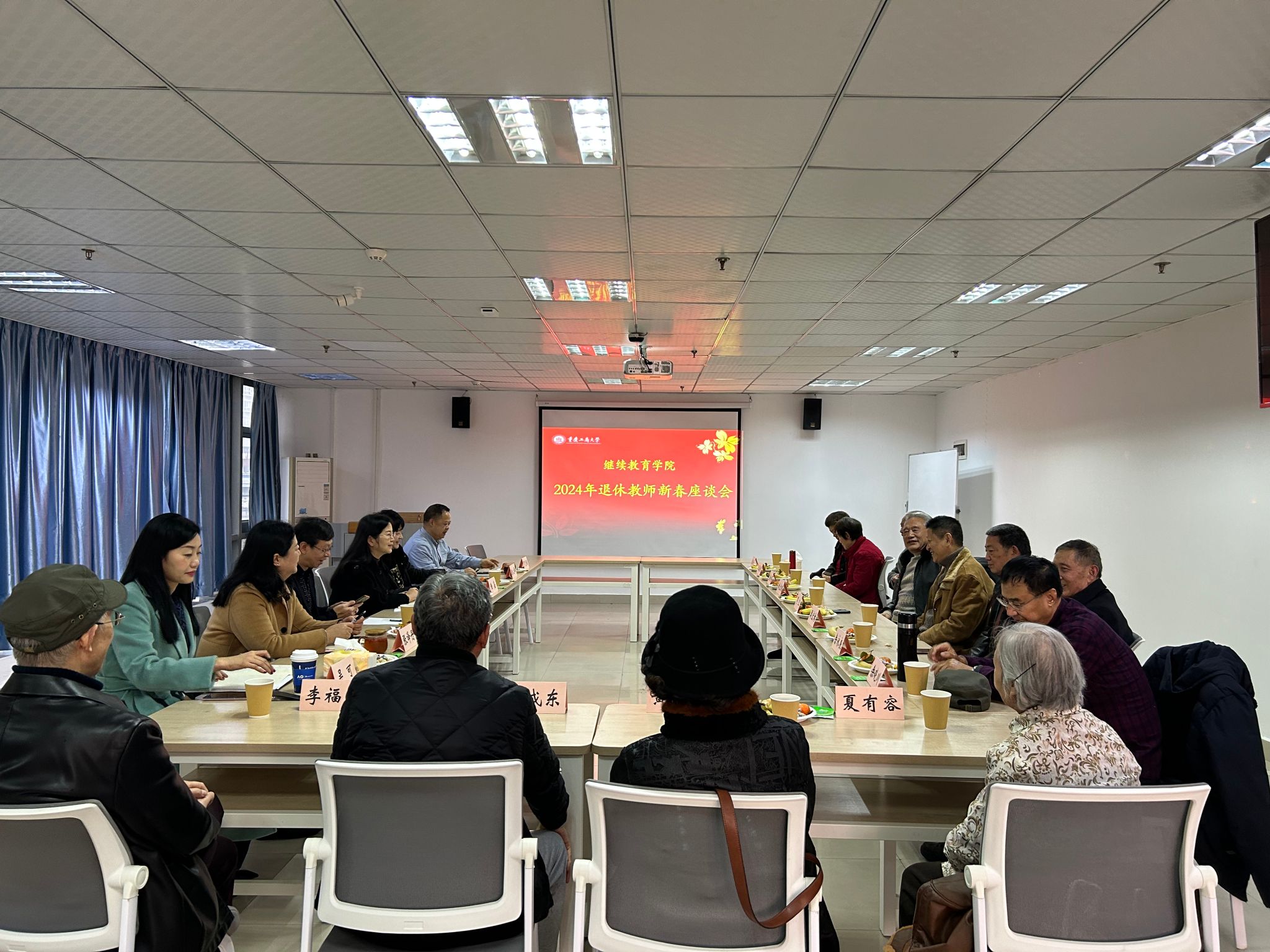 2024年1月17日上午,365英国上市公司在南岸校区公司416室召开了2024年退休教师新春座谈会,经理杜朝辉、党总支副书记陆嘉、总支委员、各科室负责人和部分教师代表参加了会议,会议由陆嘉主持。