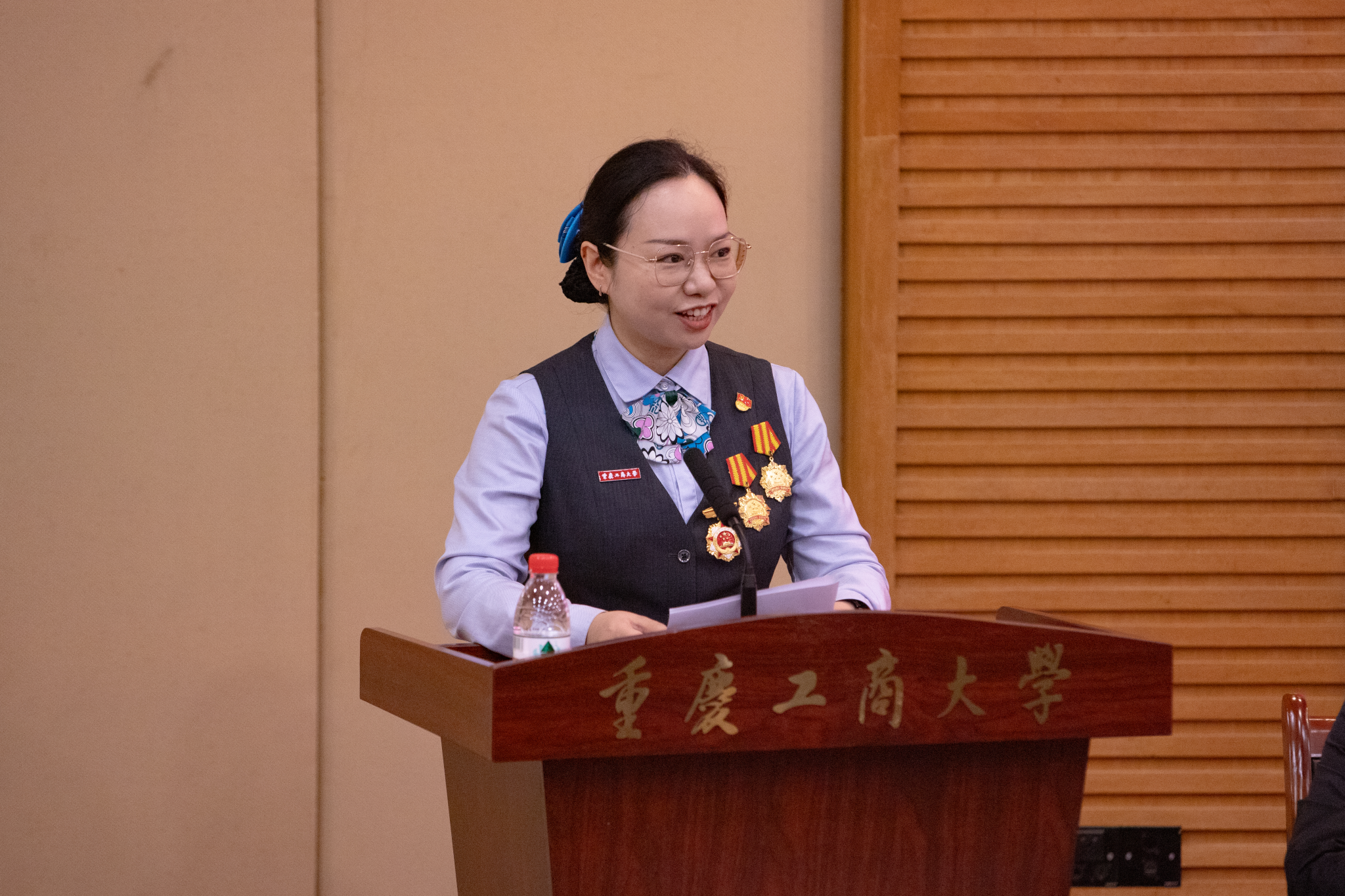 公司成教2005级工商管理专业毕业生、2022年全国五一劳动奖章获得者、2019年全国金融五一劳动奖章获得者、2023金渝奖年度金融人物、农行重庆两江分行营业部高级大堂经理陈希作为员工代表发言。她说母校一直是她最温暖的港湾和最挂念的家园,一直激励着他为金融事业的发展作力所能及的贡献。她勉励全体新同学们在接下来的学习生活中,要珍惜光阴、努力学习、认真工作,在未来的道路上勇敢前行,实现自己的梦想。