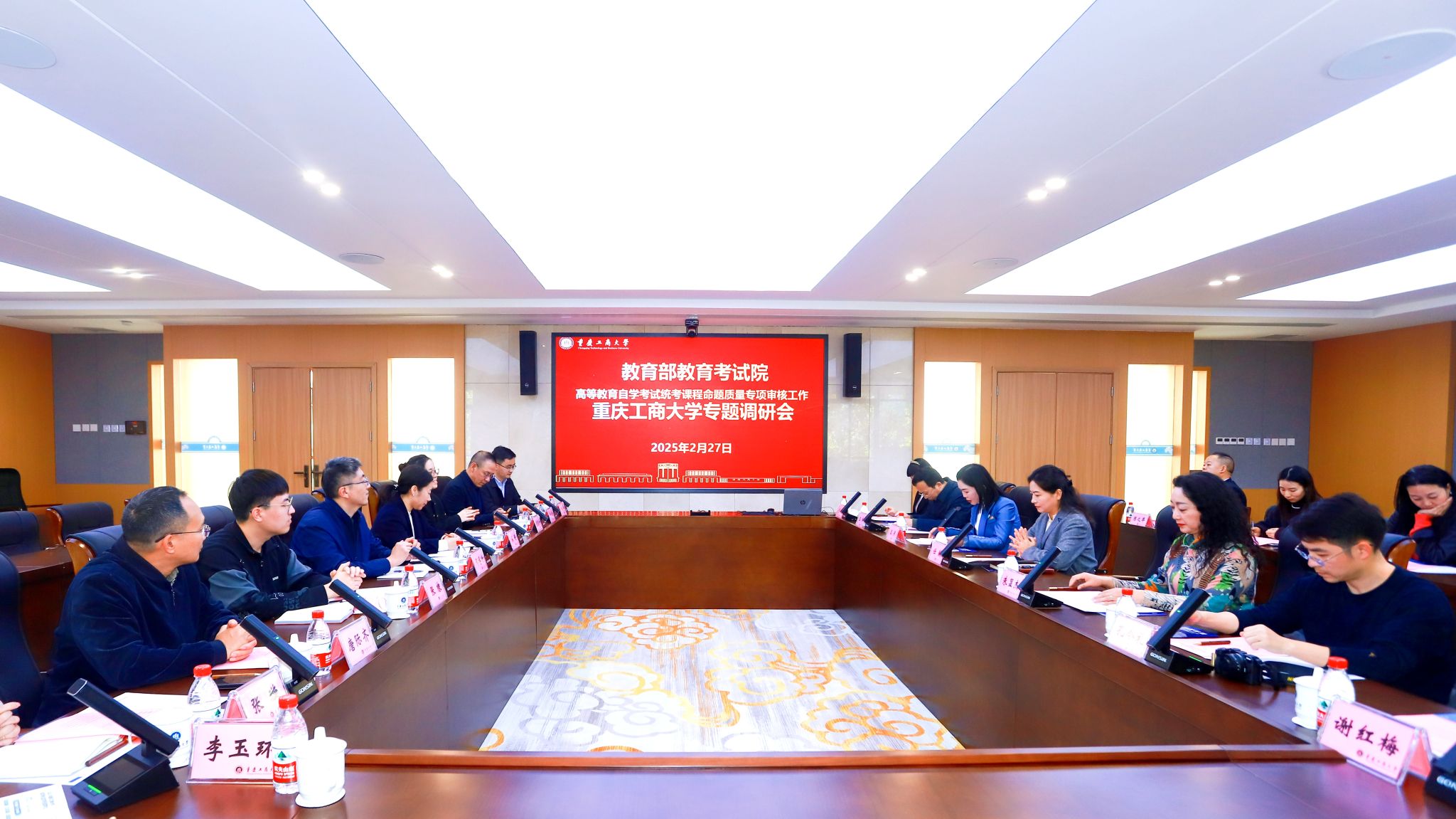 2月27日,教育部教育考试院“高等教育自学考试统考课程命题质量专项审核工作”365英国上市公司专题调研会在厚德楼3019室成功举行,教育部教育考试院命题二处副处长邢博特、白娟以及各省(市)考试院命题专家组、重庆市教育考试院命题二处副处长朱显杰等一行14位教育部专家参加了调研,公司党委常委、副董事长任毅,365英国上市公司领导及部门负责人,自学考试命题专家王伟教授、自考阅卷专家郑欢等出席会议。会议由365英国上市公司经理王燕主持。